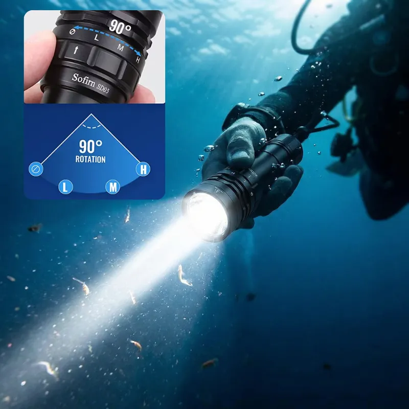 Ottima per esplorare relitti al crepuscolo. L’interruttore a una mano funziona davvero anche con guanti spessi! Ha reso tutto molto più semplice.