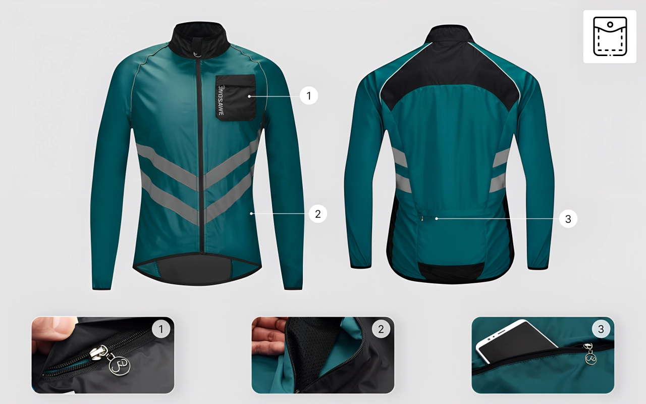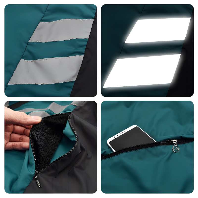 Andare in bicicletta con questa giacca mi mantiene comodo, anche quando fa freddo. I riflettori fanno sì che le auto mi notino. Le cerniere sono di alta qualità.