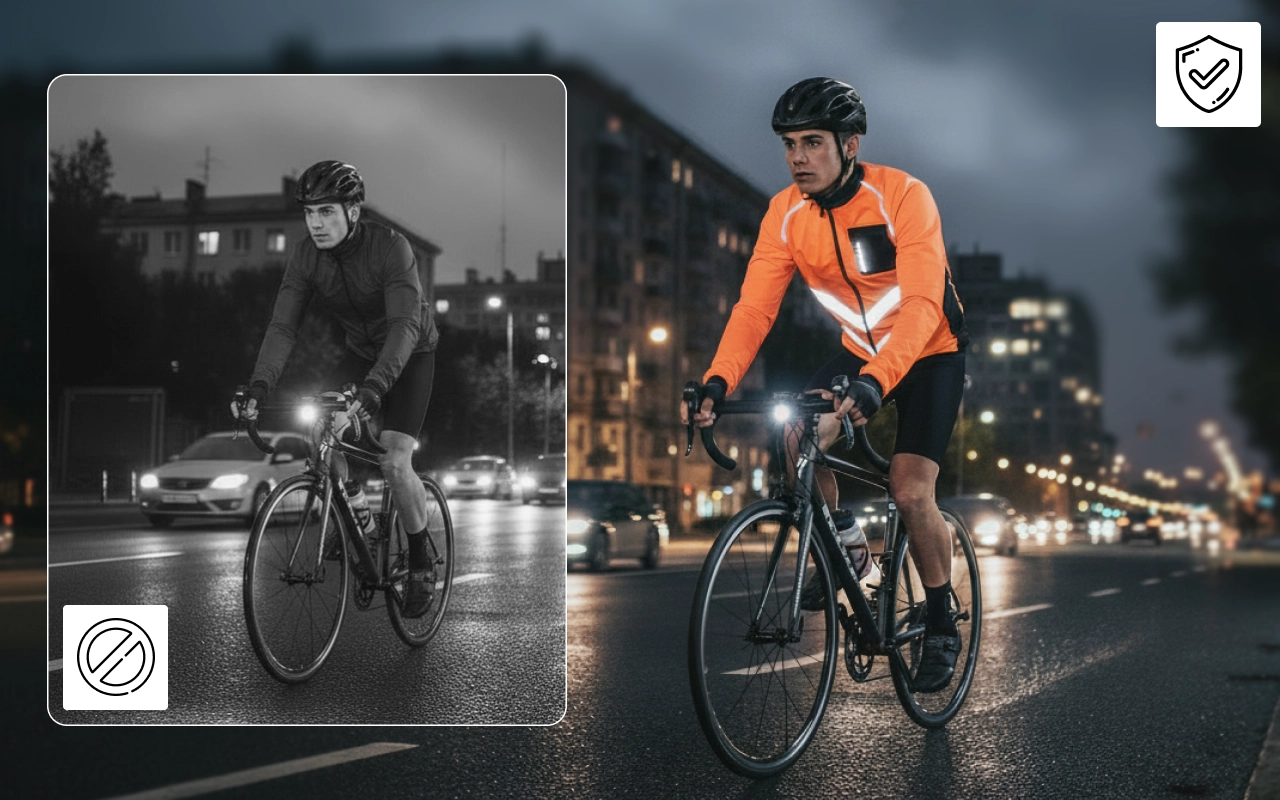 Le strisce riflettenti sul davanti e sul retro si illuminano di notte. Sei molto più facile da individuare sulle strade trafficate dopo il tramonto.