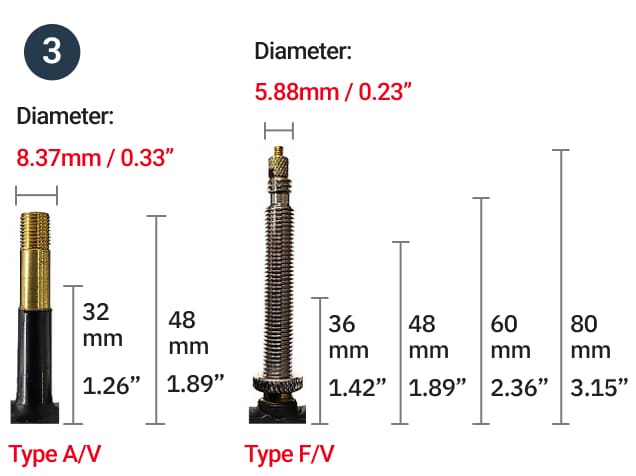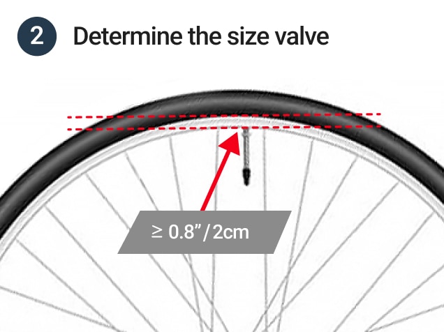 - Determina il tipo di valvola adatto controllando la misura del foro del cerchio. La lunghezza della valvola dovrebbe essere 0,8’’ (2 cm) più lunga dello spessore del cerchio.