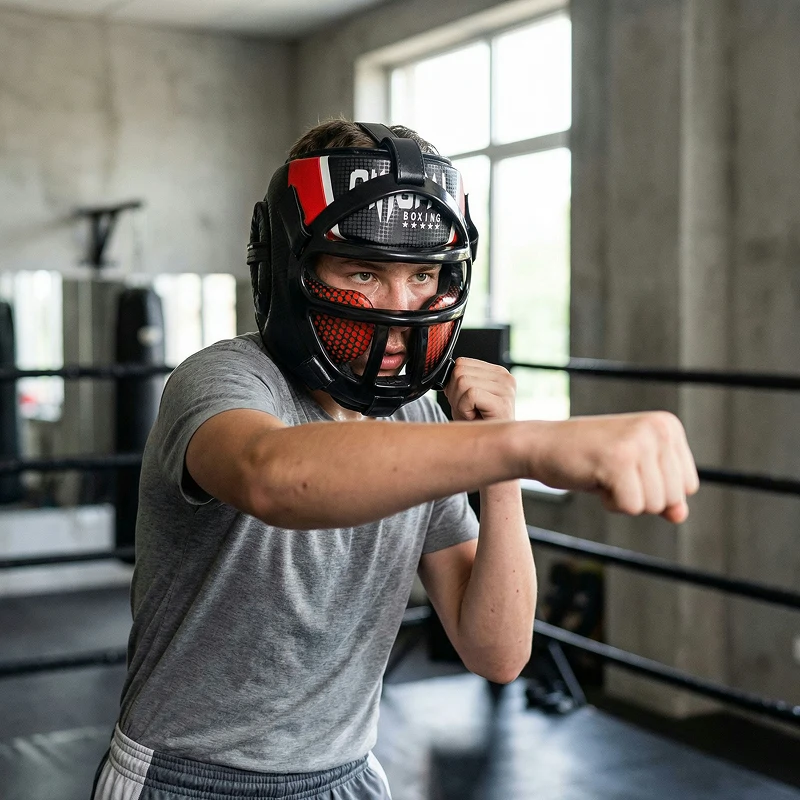 Mio nipote adulto pratica MMA e gliel’ho comprato. Ha detto che la visiera assorbe bene i calci frontali e la fodera interna non sfrega né irrita la pelle.