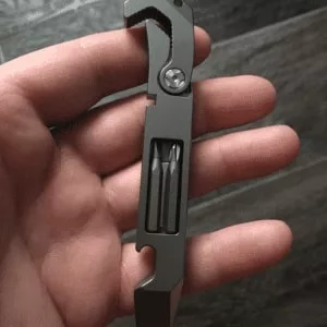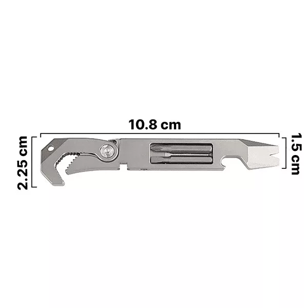 Il dispositivo Threo combina apribottiglie e apriscatole, righello, coltello, piede di porco e cacciavite in un unico robusto strumento EDC. Offre una versatilità senza pari, preparandoti a qualsiasi occasione all'aperto.