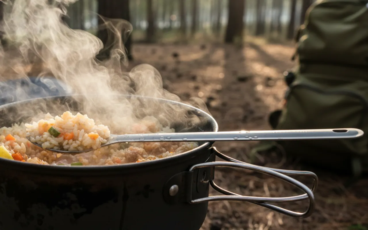 Il manico lungo mi permette di prendere il cibo dalle buste di pasti liofilizzati in profondità mantenendo sempre le mani pulite, nessun disordine!