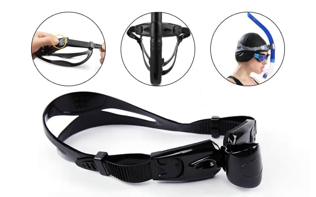 Il nostro snorkel ha un morbido e ampio cuscinetto protettivo per la testa che impedisce alle cinghie di premere sulla fronte. Si adatta delicatamente alla fronte, aiutando a evitare mal di testa e fastidi anche durante lunghe sessioni sott'acqua.