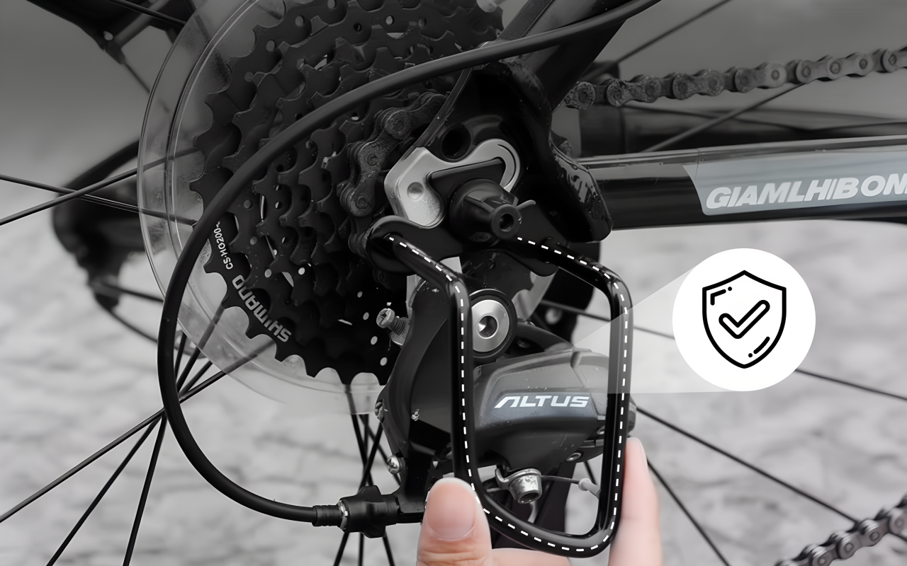 La protezione Threo resiste agli urti e ai graffi, garantendo prestazioni durature. Mantiene il deragliatore in ottime condizioni anche dopo innumerevoli uscite.
