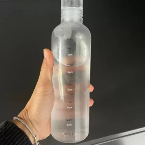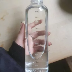 Bottiglia molto pratica ed efficiente, ma avrei preferito che fosse un po’ più grande. I materiali sono di buona qualità e i segni temporali aiutano davvero a raggiungere gli obiettivi quotidiani di consumo d’acqua.