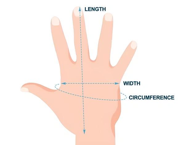 - 1. Misura dalla base del palmo fino alla punta del dito medio.