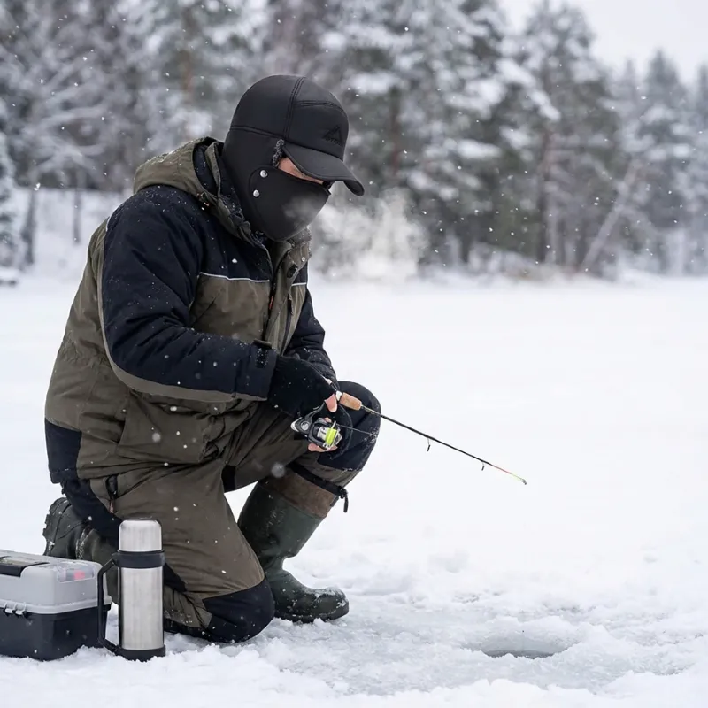 Uso il cappello mentre pesco sul ghiaccio. I paraorecchie morbidi bloccano la brezza dal lago e la maschera evita che il viso bruci per il freddo. Calza comodo sopra le orecchie.