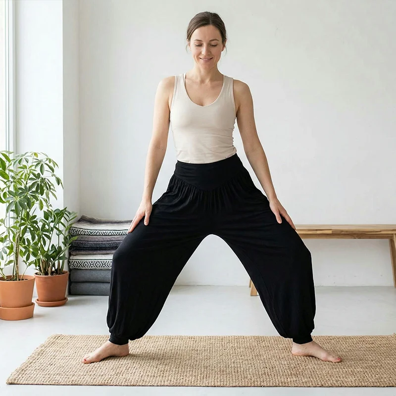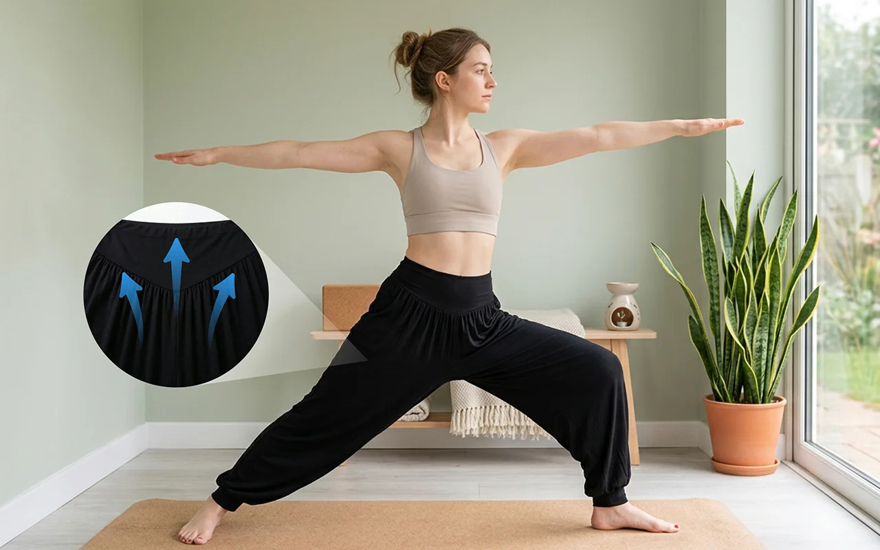 Indosso questi pantaloni harem per lo yoga caldo e mi tengono fresca per tutta la lezione. Non si attaccano quando sudo e restano delicati anche dopo un’ora.