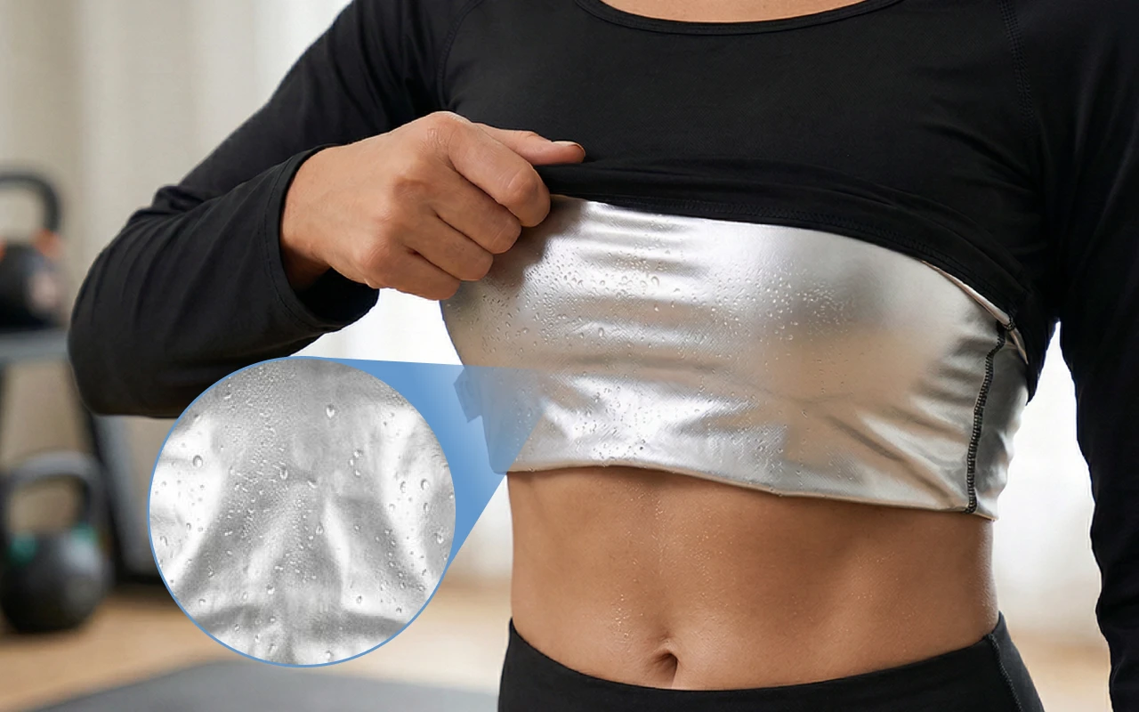 Questa maglia sauna mi aiuta a sudare tantissimo in poco tempo e adoro come mantiene la pancia con un aspetto liscio sotto la felpa della palestra.