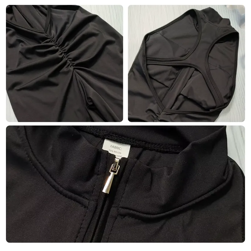 Ho comprato questa tuta intera per le mie sessioni in palestra al mattino presto e la adoro. Il dettaglio arricciato sul retro solleva bene, la zip rimane al suo posto e il tessuto non dà mai una sensazione appiccicosa.