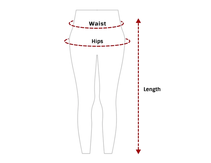 | SIZE | LENGTH | WAIST | HIPS | |||