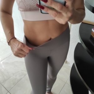 Questi leggings hanno una bella vita alta aderente, quindi non ho dovuto tirarli su continuamente. Inoltre valorizzano il mio sedere e non diventano trasparenti quando mi piego, il che è ottimo per allenarsi.